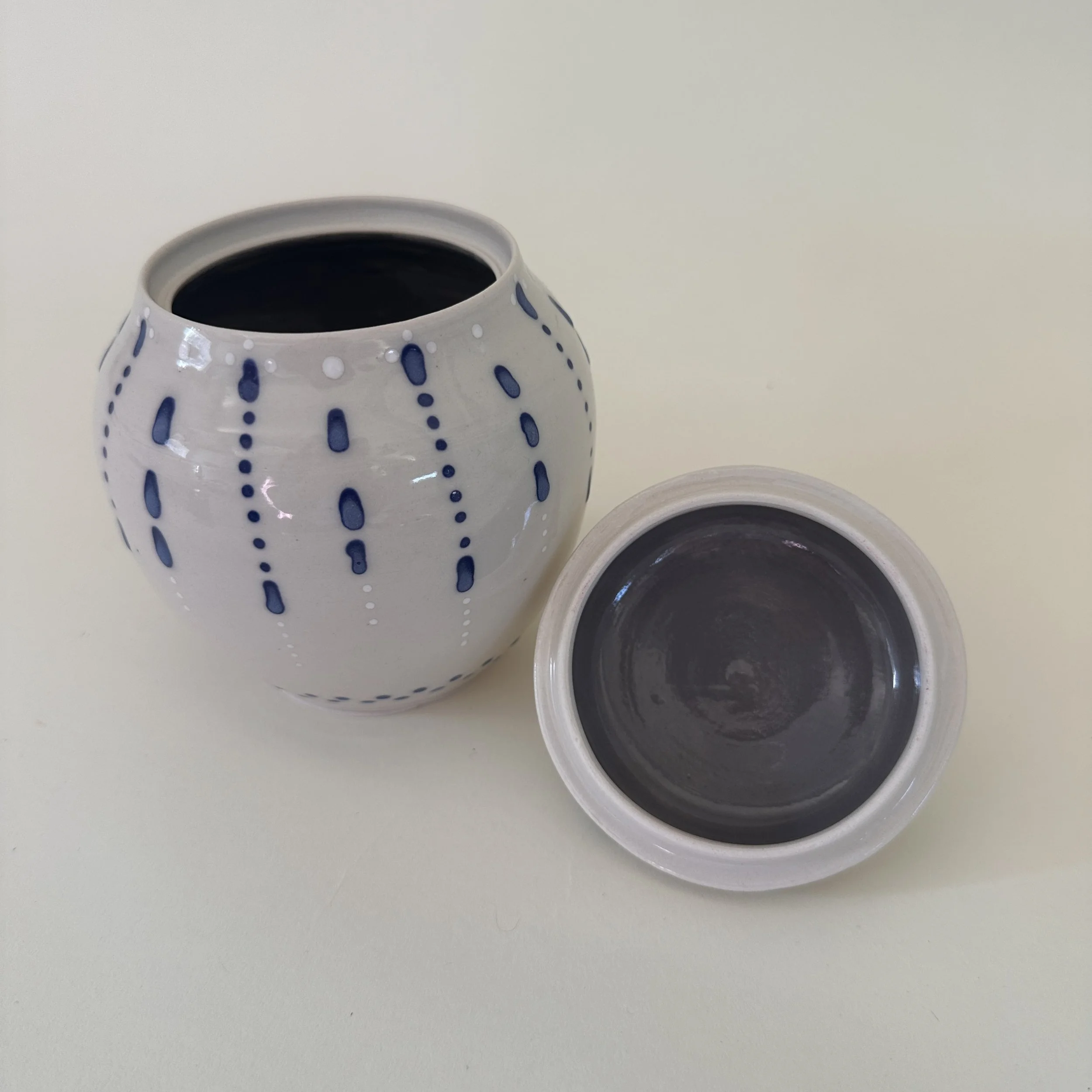 Wheel thrown and scallop jewelry plate with stamped embellishment on center - light blue glossy glaze inside with clear glossy glaze on rim, and edges on porcelain clay.